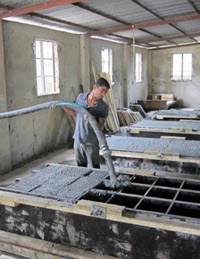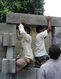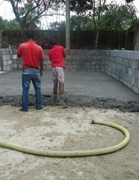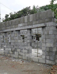 Poly ConCrete has developed a new and innovative concept for production of Poly concrete blocks to be used as building materials. The method is cheap and environmental friendly and meets the needs of developing countries. The concept is built on an energy friendly production based on recycled and new polystyrene bobbles and cement.