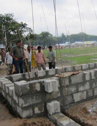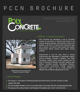 Poly ConCrete has developed a new and innovative concept for production of Poly concrete blocks to be used as building materials. The method is cheap and environmental friendly and meets the needs of developing countries. The concept is built on an energy friendly production based on recycled and new polystyrene bobbles and cement.
